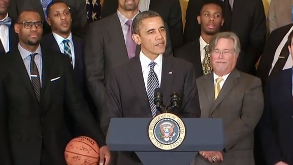 Ο Ομπάμα, αν και… δηλωμένος οπαδός των Μπουλς, συνεχάρη όλους τους παίκτες για την επιτυχία τους, αλλά και τη φιλανθρωπική τους δραστηριότητα, ενώ εξήρε αρκετούς εξ αυτών ως οικογενειάρχες.