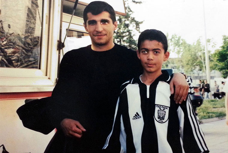 Το ντεμπούτο του ως ball boy στην Τούμπα έγινε σε ματς εναντίον του Ηρακλή και καθόταν μπροστά στην θύρα των φιλοξενουμένων.