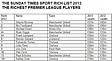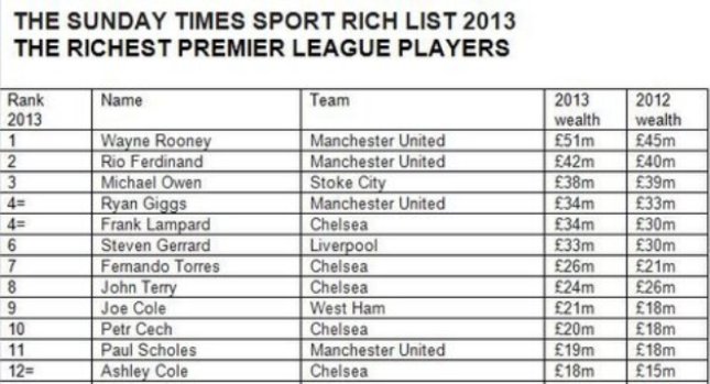 Με περίπου 60 εκατομμύρια ευρώ στο λογαριασμό του για φέτος, ο επιθετικός της Μάντσεστερ Γιουνάιτεντ έχει τα πρωτεία στη λίστα, ενώ τον ακολουθεί ο Ρίο Φέρντιναντ.