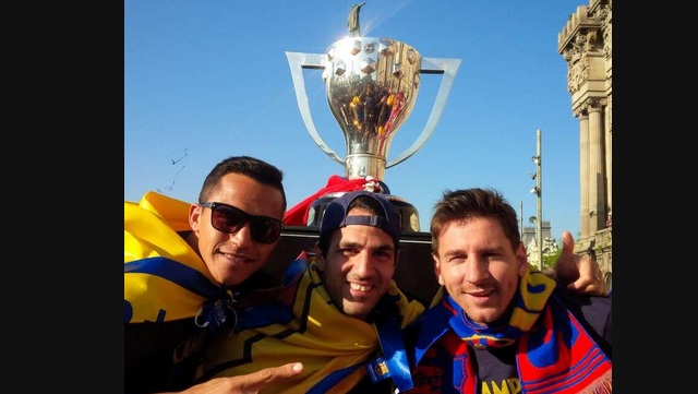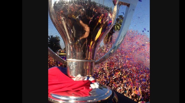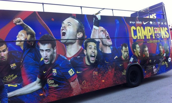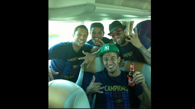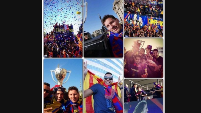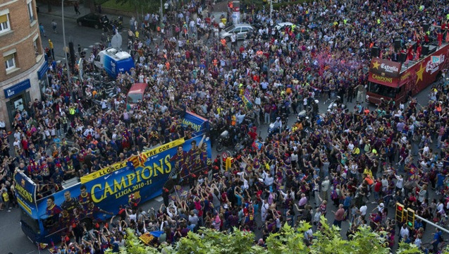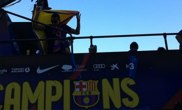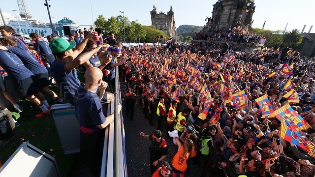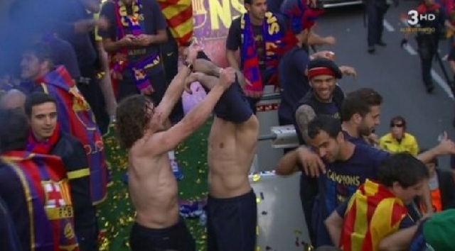 Μέσι, Φάμπρεγας, Πουγιόλ, Ινιέστα, Αμπιντάλ, Ντάνι Άλβες και οι υπόλοιποι παίκτες δεν σταμάτησαν να πανηγυρίζουν λεπτό με τον κόσμο σε όλη τη διάρκεια της πορείας του πούλμαν προς την κεντρική πλατεία, τη στιγμή που ο Ζεράρ Πικέ είχε μάλλον περισσότερο στραμμένη την προσοχή του στη Σακίρα, που ακολουθούσε κι αυτή την πορεία, παρά στην κούπα.