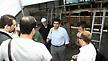 Σε πρώτη φάση η ξενάγηση, που έγινε από τον Γιάννη Παναγιωτίδη, υπεύθυνο για τα γηπεδικά θέματα της ομάδας, περιελάμβανε το «μέσα» του γηπέδου. Παρόντες ήταν και οι πολιτικοί μηχανικοί Νίκος Βεϊσάκης και Μάριος Σατερλής, υπεύθυνος των έργων αποκατάστασης. Ο κ. Παναγιωτίδης έδειξε τι γίνεται σε ότι αφορά το στατικό κομμάτι του γηπέδου. Η αρχή, λοιπόν, έγινε από την αίθουσα ξιφασκίας, η οποία θα γίνει bar των VIP κάτω από τις θύρες 3-3Α. Τα έργα γίνονται κανονικά.