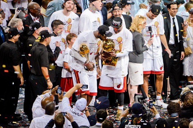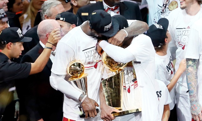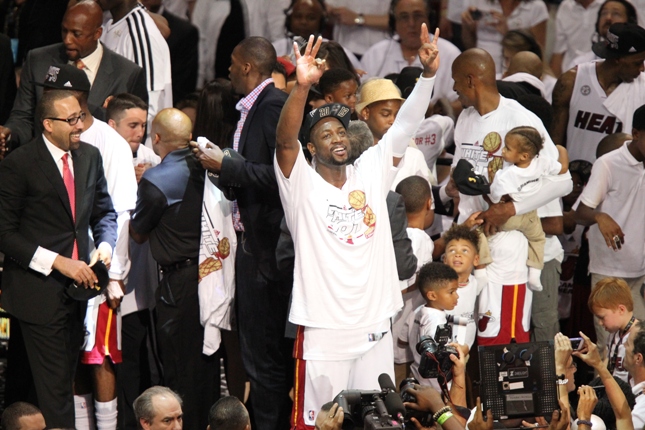 Ο Γουέιντ μοίραζε χαμόγελα και αφιέρωνε το τρόπαιο. Και κάπου στο γήπεδο, ο Τιμ Ντάνκαν δεν μπορούσε να πιστέψει πως χάθηκε για το Σαν Αντόνιο αυτός ο τίτλος. Πηγή: sport-fm.gr