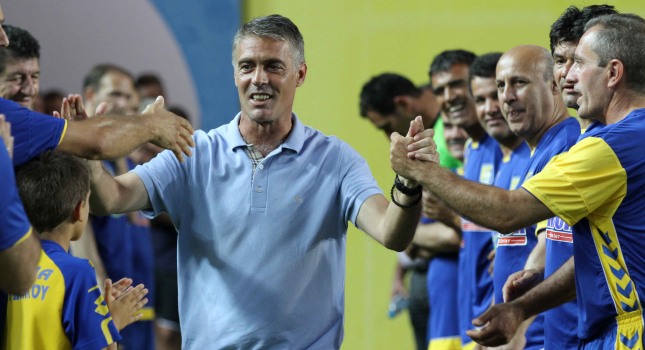 Την αποθέωση από τους παίκτες γνώρισε και ο τεχνικός της ομάδας, Μάκης Χάβος, όπως φαίνεται και στον φωτογραφικό φακό του Action Images.