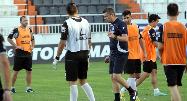 προετοιμασία των ποδοσφαιριστών του ΟΦΗ υπό το βλέμμα του τεχνικού του