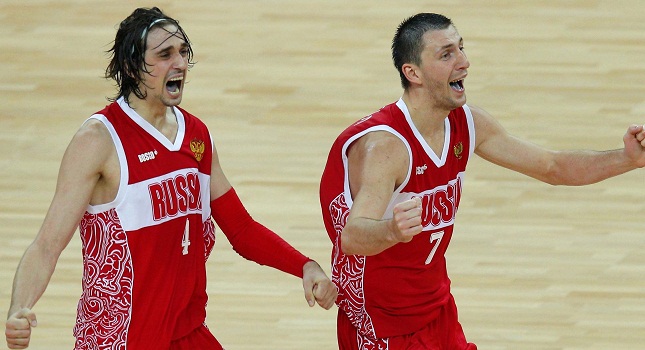 ομάδα της Ρωσίας στο Ευρωμπάσκετ της Σλοβενίας, με τον Βασίλι Καράσεφ να