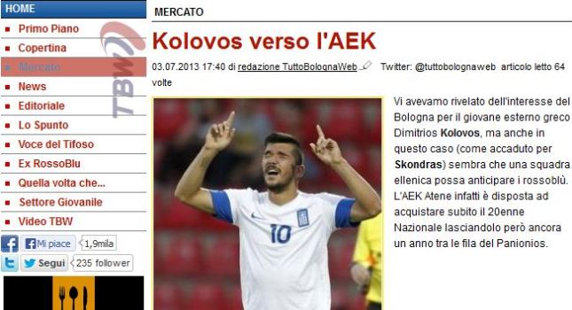 Αναφερόμενο στο ενδιαφέρον του συλλόγου για τον νεαρό εξτρέμ, το «tuttobolognaweb» παραλληλίζει την υπόθεσή του με αυτή του Γιάννη Σκόνδρα.