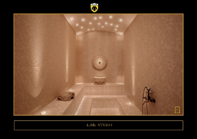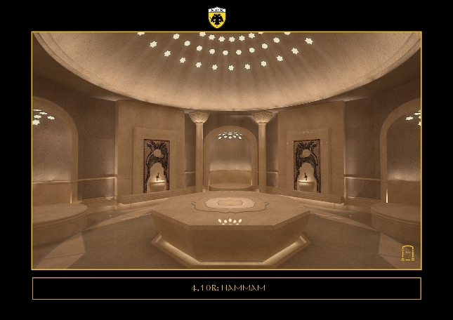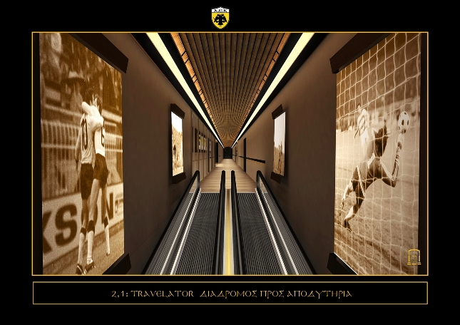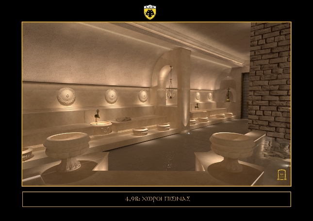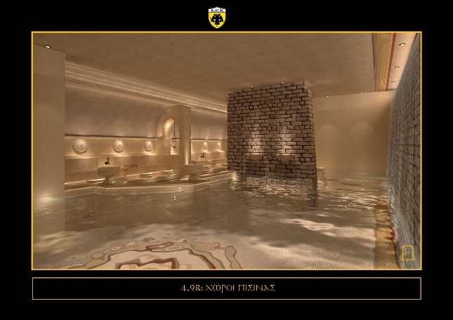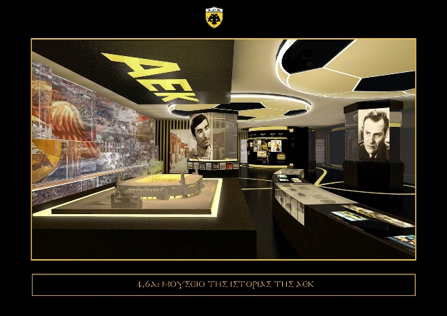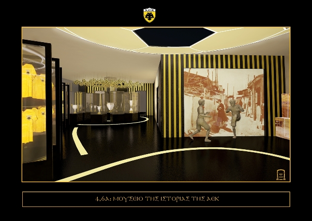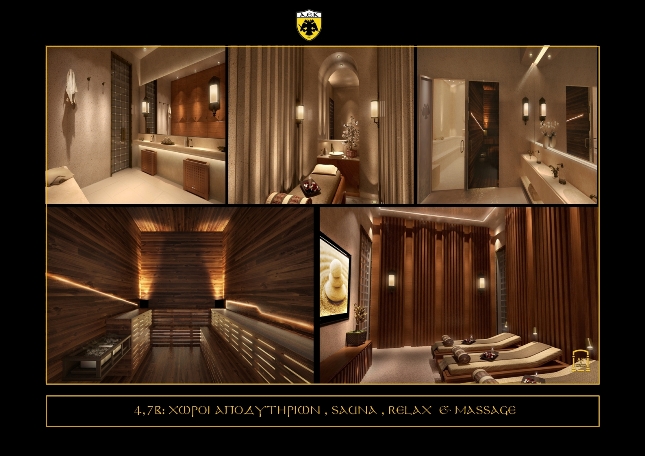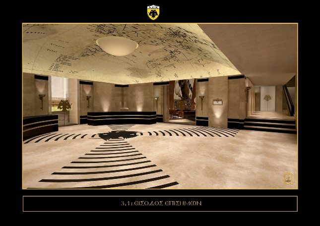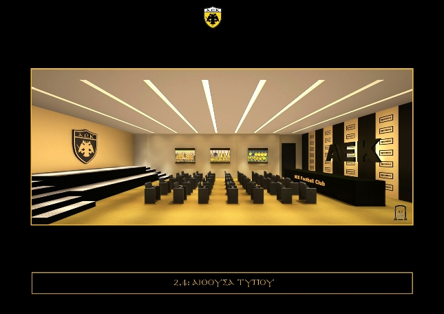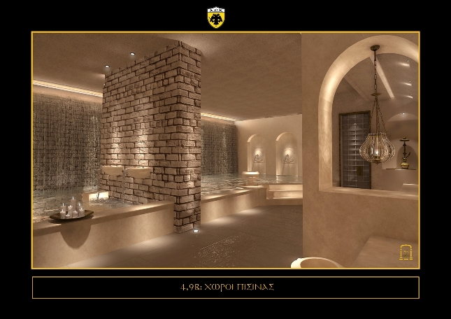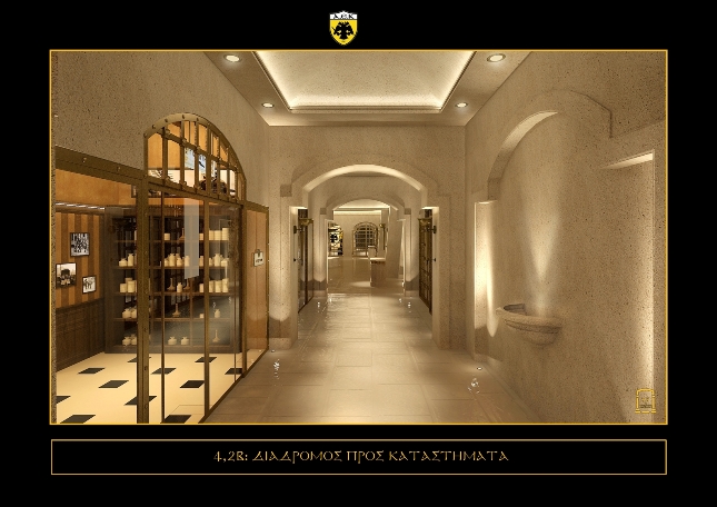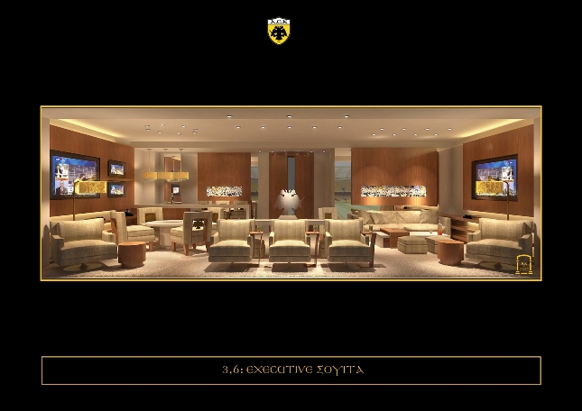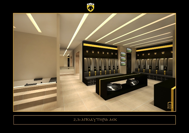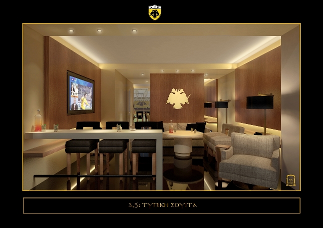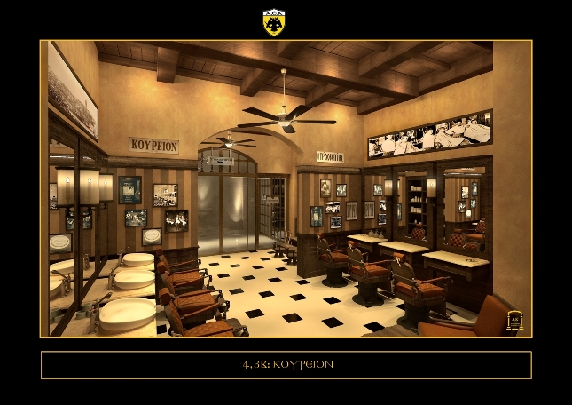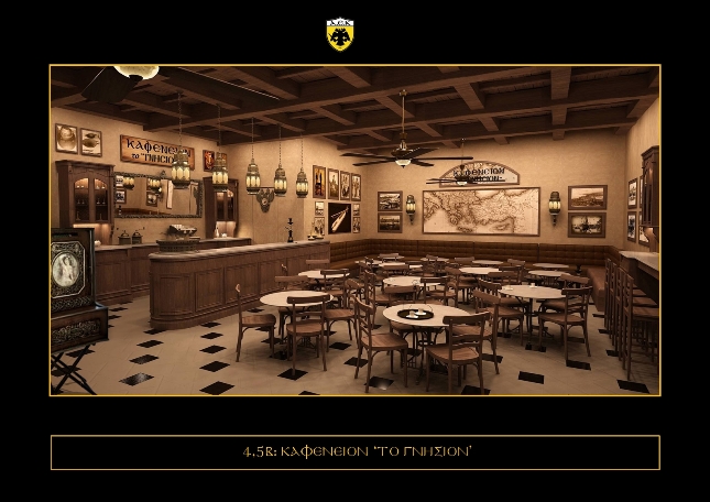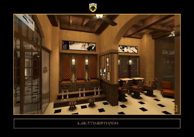 Αλλά και τους πολυτελείς εσωτερικούς χώρους. Τις χλιδάτες σουίτες. Τις αίθουσες VIP που θα ‘καναν μεγάλους ευρωπαϊκούς συλλόγους να ζηλέψουν. Και φυσικά όλα αυτά που δεν θ’ αφήνουν ποτέ τον ΑΕΚτζή -ούτε τις ημέρες που δεν παίζει η ομάδα- να ξεχνά την προέλευσή της: Το χαμάμ, το κουρείο, το στιλβωτήριο, το παραδοσιακό καφενείο…
