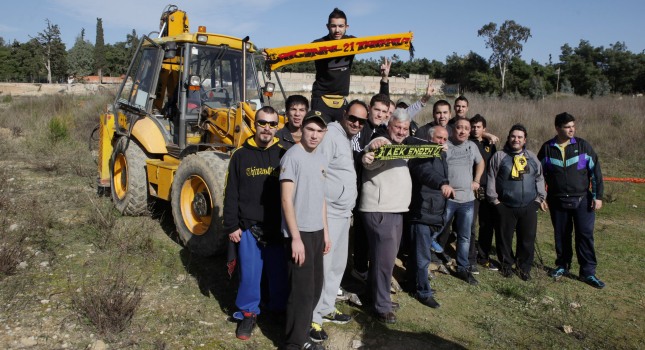 Πράγματι ξεκινάμε σήμερα για να τελειώσουμε στο τέλος του 2015 το γήπεδο, όπως έχει πει ο κ. Μελισσανίδης. Είμαι πολύ συγκινημένος, όπως είναι όλοι οι Ενωσίτες», δήλωσε ο Νίκος Στράτος, που επέβλεψε τις πρώτες εργασίες.