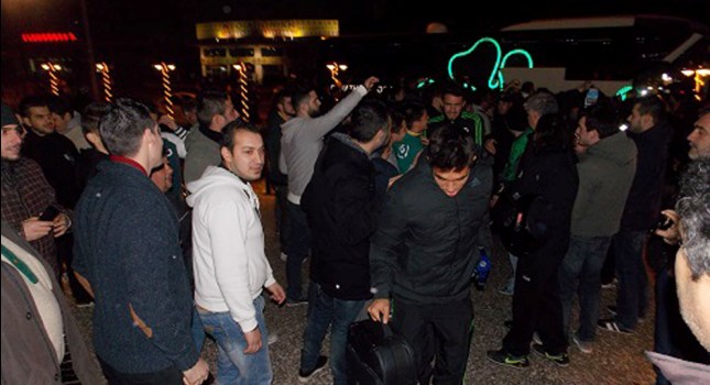 Η αποστολή του «τριφυλλιού» έφτασε εκεί το απόγευμα και αρκετοί ήταν οπαδοί των «πρασίνων» που αποθέωσαν τους ποδοσφαιριστές της ομάδας, ζητώντας τη νίκη στο παιχνίδι με τον Παναιτωλικό, ο οποίος είναι αήττητος φέτος στο γήπεδό του στο πρωτάθλημα.