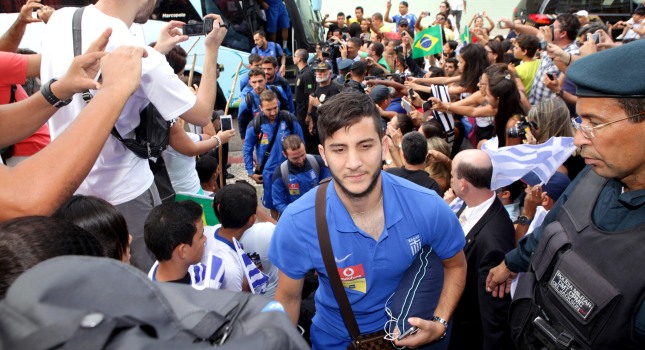 Μια ευχάριστη έκπληξη περίμενε τους διεθνείς κατά την άφιξή τους στο ξενοδοχείο όπου θα διαμένουν. Περίπου 150 παιδάκια υποδέχθηκαν την «γαλανόλευκη» με συνθήματα, ελληνικές σημαίες χαμόγελα και πολύ ωραίο κλίμα, κάτι που άρεσε ιδιαίτερα στους παίκτες του Σάντος μετά από την ταλαιπωρία που τράβηξαν.
