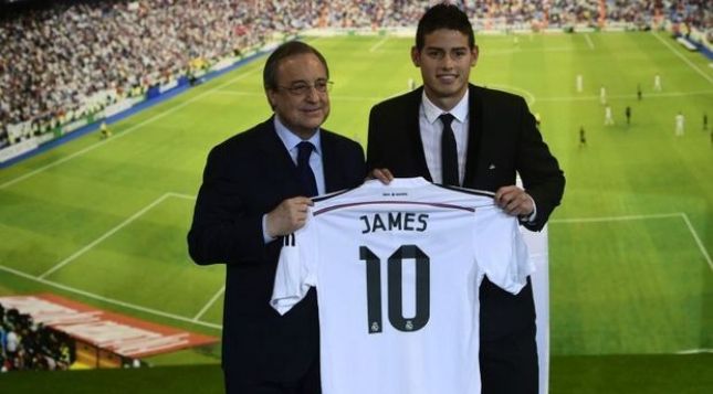 Πριν τον Χάμες, στο βήμα ανέβηκε ο πρόεδρος των Μαδριλένων, Φλορεντίνο Πέρεθ που μίλησε με εγκωμιαστικά σχόλια για τον νέο «αστέρα» των μερένχες. «Χάμες, οι φανέλες που ονειρεύτηκες να φορέσεις των Φίγκο, Ζιντάν, Ραούλ και Ρονάλντο… τώρα είναι δικές σου. Οι γονείς σου θα πρέπει να είναι πολύ περήφανοι. Οδήγησες στο Μουντιάλ την εθνική του σε μια εξαιρετική πορεία. Οι Κολομβιανοί και οι φίλοι της Ρεάλ ανά τον κόσμο θα δίνουν και την ψυχή τους για σένα απ’ τις εξέδρες και ελπίζω το ίδιο θα κάνεις κι εσύ στο γήπεδο. Για τη Ρεάλ. Το Μπερναμπέου είναι ήδη… το δικό του Μπερναμπέου. Καλώς ήρθες σπίτι».