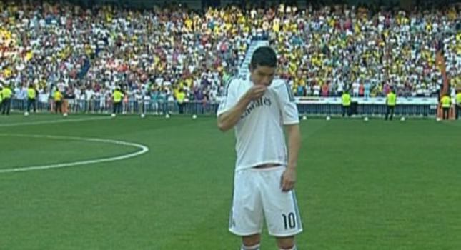 Μπροστά σε 35.000 κόσμο που πήγε στο «Μπερναμπέου» κι ανάμεσά τους βρίσκονταν χιλιάδες Κολομβιανοί, ο Χάμες Ροντρίγκεζ παρουσιάστηκε και επίσημα ως το νέο μεγάλο αστέρι των «γκαλάκτικος», φιλώντας το σήμα της νέας του ομάδας.