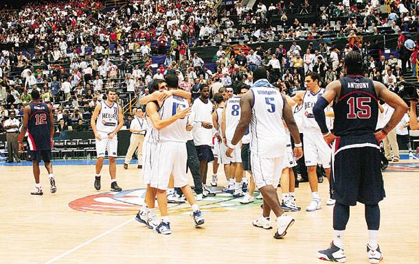 Όλα τα φώτα του παγκοσμίου μπάσκετ συγκεντρώθηκαν στην Αθήνα, η οποία ανέλαβε να φιλοξενήσει το δέκατο τρίτο Μουντομπάσκετ της ιστορίας. Η Εθνική μας ομάδα προερχόταν από την εξαιρετική της παρουσία στον Καναδά και ήθελε μπροστά στο κοινό της να κατακτήσει το πρώτο της μετάλλιο στον θεσμό. Το γεγονός πως οι ΗΠΑ κατέβαιναν χωρίς ΝΒΑερ αλλά με… «Ευρωπαίους» Αμερικανούς, έκαναν το ενδεχόμενο αυτό να μοιάζει εξαιρετικά πιθανό. Οι πολύ καλές εμφανίσεις της πρώτης φάσης, αλλά και η νίκη στον προημιτελικό απέναντι στους Ισπανούς με 69-62 (με έναν εξαιρετικό Γιώργο Μπαλογιάννη), έδειχναν πως όλα πήγαιναν βάσει σχεδίου. Ο ημιτελικός απέναντι στη Σερβία ήταν μία πρώτης τάξεως ευκαιρία για τους Έλληνες, να ξορκίσουν το φάντασμα των «πλάβι», που τους κυνηγούσε από το Ευρωμπάσκετ του 95’ όταν ο Μποντίρογκα και η παρέα του είχαν κερδίσει δύο φορές τους Έλληνες στο σπίτι τους. Παρόμοιο το σκηνικό και σε αυτόν τον ημιτελικό, αφού οι Σέρβοι του Ζέλικο Ομπράντοβιτς επικράτησαν με 78-73, αφήνοντας τους διοργανωτές εκτός τελικού, την ώρα που οι Ρώσοι κέρδιζαν τα «δεύτερα» των Αμερικανών με 66-64 παίρνοντας το δεύτερο εισιτήριο για τον μεγάλο τελικό της 9ης Αυγούστου. Οι Σέρβοι κατάφεραν για μία ακόμη φορά να κατακτήσουν το χρυσό μετάλλιο επικρατώντας της «αρκούδας» με 64-62, ενώ το χάλκινο πήγε σε αμερικάνικα χέρια, αφού οι ΗΠΑ νίκησαν εύκολα την οικοδέσποινα Ελλάδα στον «τελικό της παρηγοριάς», με 84-61. MVP της διοργάνωσης, ο γνωστός μας από την μακρά – και πολύ πετυχημένη - θητεία του στον Παναθηναϊκό, Ντέγιαν Μποντίρογκα. Πρώτος σκόρερ στα ελληνικά παρκέ, ο Ισπανός Αλμπέρτο Ερέρος, με 17,9 πόντους ανά παιχνίδι.