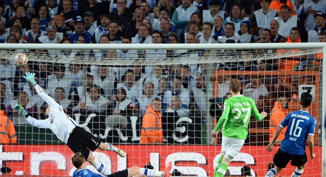Η Βόλφσμπουργκ δεν είχε όρεξη για αστεία στην “Schuco-Arena” κι έτσι έκανε ιδανική εκκίνηση στο παιχνίδι, λίγο πριν την συμπλήρωση ενός δεκαλέπτου. Ο Καλιγκιούρι έκλεψε από τον Σάλγκερ και έστρωσε την μπάλα στον Άρνολντ που με αριστερό σουτ άνοιξε το σκορ για να γράψει το 0-1. Το 0-2 ήρθε λίγο μετά το ημίωρο, με τον Ροντρίγκεζ να εκτελεί φάουλ, τον Ντοστ να πιάνει πρώτη κεφαλιά στο δεύτερο δοκάρι και με μια δεύτερη ο Λουίζ Γκουστάβο να σκοράρει, για να δώσει ακόμα πιο μεγάλο προβάδισμα στους «Λύκους» και να βάλει στέρεες βάσεις στην πρόκριση.