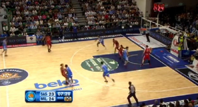 Bruttissimo gesto di Sosa, che rifila un pugno a Cerella e si vede fischiare un antisportivo. Milano ne approfitta e va sopra 28-23
