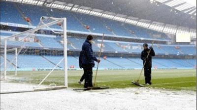 Μπορεί το χιόνι να είχε καλύψει τον αγωνιστικό χώρο και τις κερκίδες στο γήπεδο της Σίτι, ωστόσο τα εκχιονιστικά μηχανήματα κατάφεραν να καθαρίσουν τον αγωνιστικό χώρο για να διεξαχθεί κανονικά η σημερινή αναμέτρηση. Δύσκολο έργο θα έχουν οι ποδοσφαιριστές, αφού στο Νησί επικρατούν πολικές θερμοκρασίες.