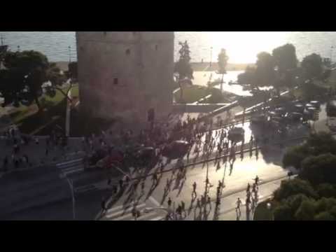 προκλητικά εναντίον της αστυνομίας κοντά στον Λευκό Πύργο, αλλά και η