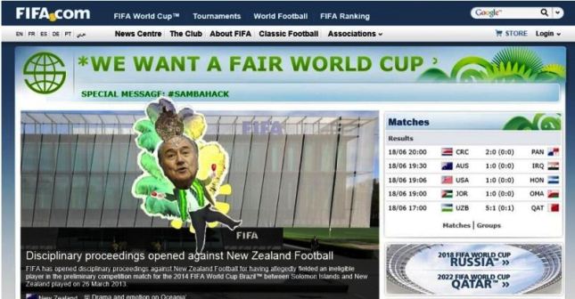 Χάκερ επιτέθηκαν στην σελίδα της Παγκόσμιας Ομοσπονδίας με το σύνθημα «θέλουμε ένα δίκαιο Παγκόσμιο Κύπελλο.