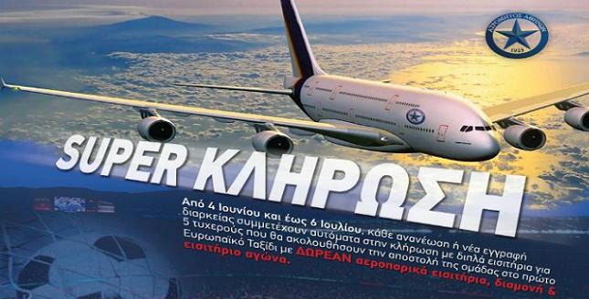 Έτσι, ο οποιοσδήποτε αγοράσει εισιτήριο διαρκείας μέχρι την ερχόμενη Παρασκευή 12 Ιουλίου και ώρα 20.00 αυτομάτως παίρνει μέρος στη μεγάλη κλήρωση για τους πέντε τυχερούς οι οποίοι θα κερδίσουν διπλά εισιτήρια με όλα τα έξοδα πληρωμένα για το πρώτο ευρωπαϊκό μας ταξίδι.