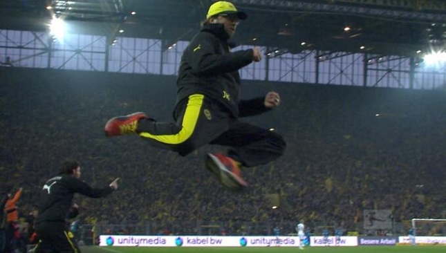 Μετά την ήττα από την Ρεάλ Μαδρίτης στο Champions League η Μπορούσια ήθελε να επιστρέψει στις νίκες στην Bundesliga και μόλις ο Ρόις έστειλε την μπάλα στα δίχτυα των «λύκων», ο Γερμανός προπονητής πανηγύρισε με άλμα αλά… Μάικλ Τζόρνταν.