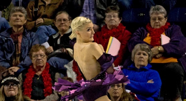 Το κορδονάκι που κρατούσε το φόρεμά της στη θέση του έσπασε και η Σουηδέζα λίγο έλειψε να ξεγυμνωθεί μπροστά στο κοινό. Για καλή της τύχη, συγκράτησε το ρούχο και κατάφερε να δέσει ξανά τον κόμπο.