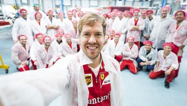 Ο τετράκις παγκόσμιος πρωταθλητής της Formula 1, που μεταπήδησε στη «σκουντερία» από τη Red Bull, δεν έχασε την ευκαιρία να φωτογραφηθεί με τους ανθρώπους του εργοστασίου, που του ετοιμάζουν το μονοθέσιο.