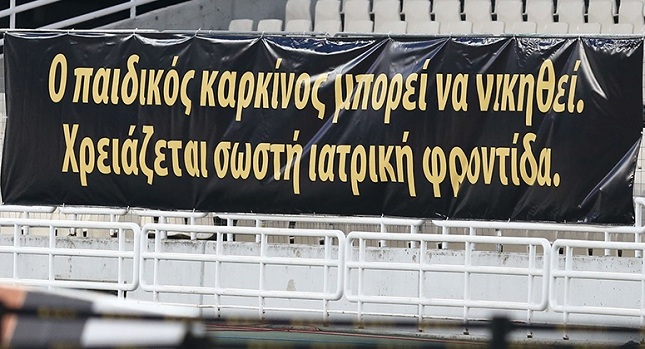 Το δικό της μήνυμα έστειλε για άλλη μία φορά η μαθητική κερκίδα της ΑΕΚ στο χθεσινό παιχνίδι με τον Αχαρναϊκό. Αυτή τη φορά οι μικροί φίλοι της «Ένωσης» είχαν ως θέμα τον παιδικό καρκίνο.