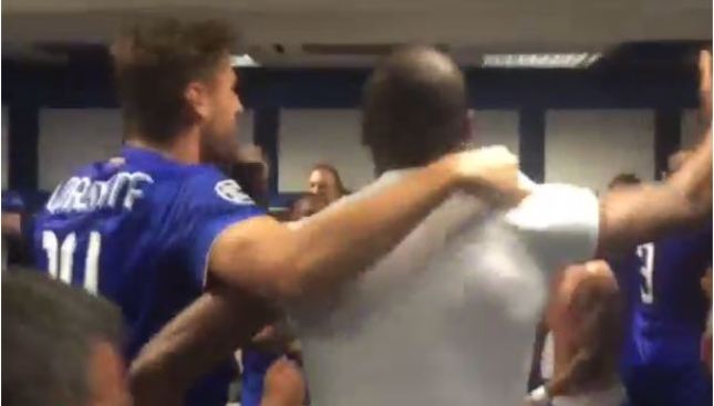 Τρελοί πανηγυρισμοί στα αποδυτήρια της Γιουβέντους μετά το τέλος του ημιτελικού με την Ρεάλ Μαδρίτης στην Ισπανία.