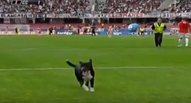 Φανερά άσχετο με το άθλημα, το τετράποδο άρχισε να τρέχει άσκοπα στο χορτάρι δείχνοντας πως έχει καλή κίνηση δίχως την μπάλα. Στα θετικά της εμφάνισής του το γεγονός πως κανένας αμυντικός ή άνθρωπος του προσωπικού ασφαλείας δεν κατόρθωσε να το σταματήσει.